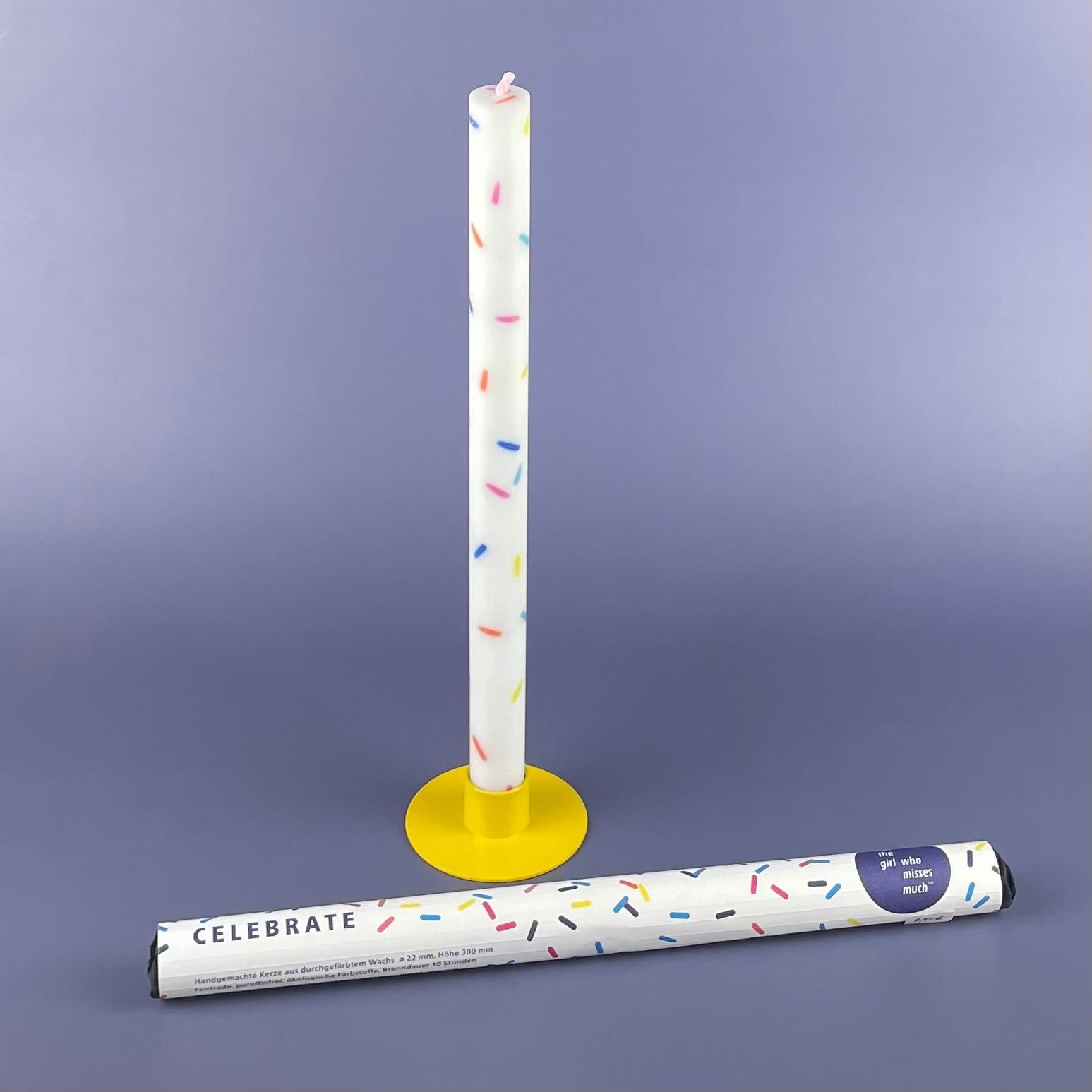 Celebrate, den Wachs dieser Kerze haben wir mit einer extra großen Portion bunter Streusel versehen.