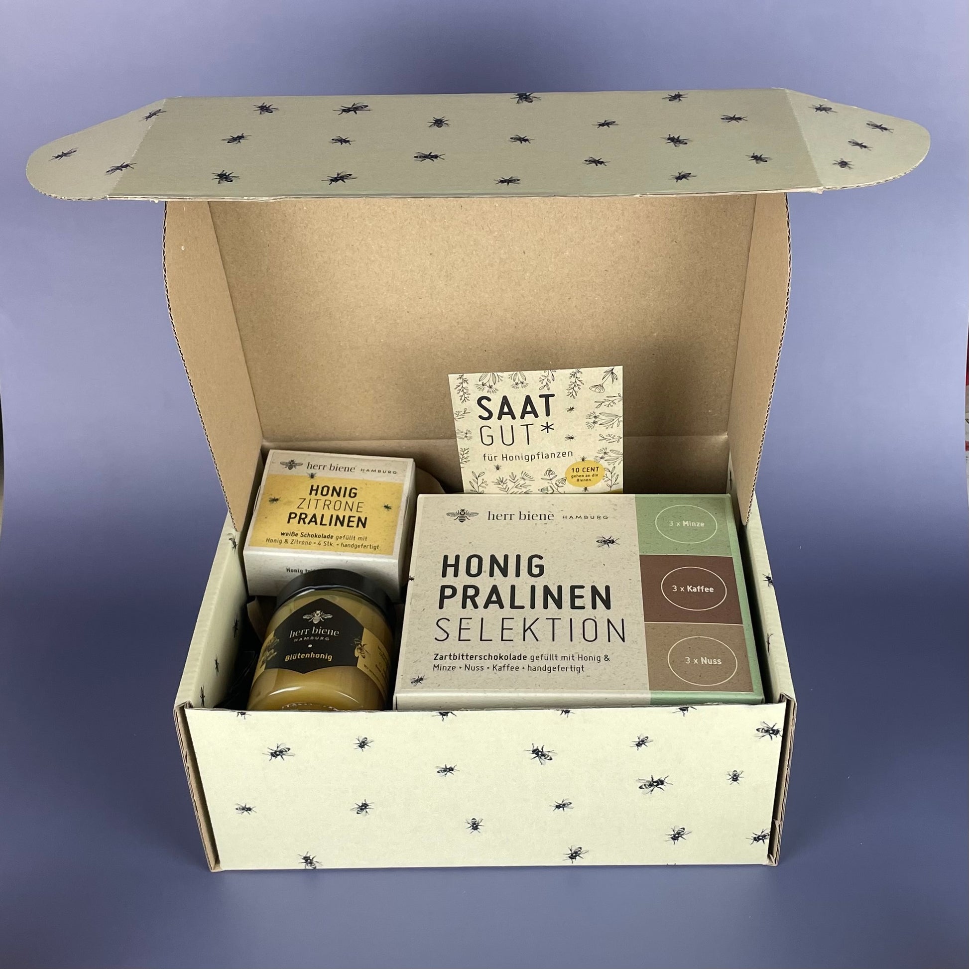 Geschenkbox mit Banderole I Honigpralinen Selektion (L)